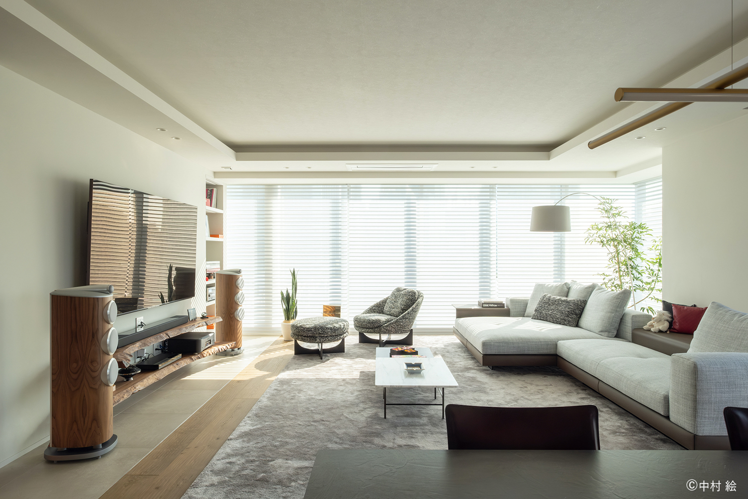 南面の大開口窓から景観を取り込み、採光性を高めた。4m以上の天井高、白を基調とした内装で、より豊かで開放的な空間が実現した。